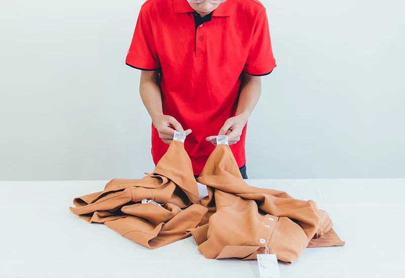 Ütüləndikdən sonra geyimlər hərtərəfli keyfiyyət yoxlanılır və qablaşdırılıb.
