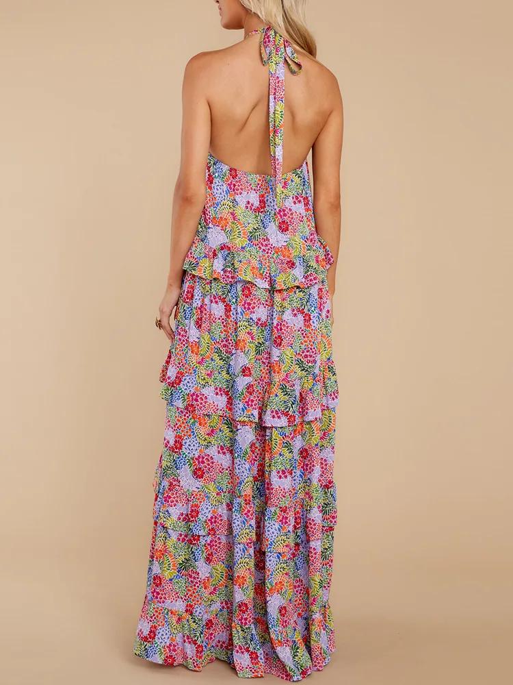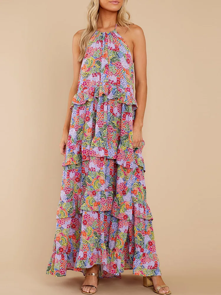 Qaynar Teqlər: Qadın Elegant Floral Print Pambıq Maxi Don